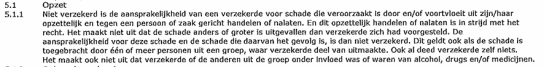 NN c.s. voeren als betoog dat in artikel 5.1.1 van de toepasselijke polisvoorwaarden een ruimere opzetclausule met [eiser] is overeengekomen dan de standaard-opzetclausule, zoals die door het Verbond van Verzekeraars is geformuleerd. Vanwege de zinsnede in artikel 5.1.1 ‘het maakt niet uit dat de schade anders of groter is uitgevallen dan verzekerde zich hard voorgesteld’ kan [eiser] zich volgens NN c.s. er niet op beroepen dat het door [buurman] als gevolg van het voorval van 4 mei 2021 gestelde geleden letsel geen objectief te verwachten gevolg was van zijn gedraging. In dat betoog kunnen NN c.s. niet worden gevolgd. Voorshands is voldoende aannemelijk dat een bodemrechter bedoelde geciteerde zinsnede aldus zal uitleggen dat daarmee door partijen is beoogd expliciet te maken dat – zoals volgt uit het aangehaalde arrest van de Hoge Raad – ook letsel of zaakschade waarop de opzet van de verzekerde niet subjectief gericht was onder de uitsluiting van de opzetclausule kan vallen. Dat is blijkens hetgeen hiervoor is overwogen het geval als dat letsel of die schade naar objectieve maatstaven als een te verwachten of normaal gevolg van een gedraging van de verzekerde kan worden aangemerkt. In het kader van dit kortgeding zal er dan ook van worden uitgegaan dat tussen partijen een opzetclausule is overeengekomen met een gelijke strekking als die van de hiervoor aangehaalde door het Verbod van Verzekeraard geformuleerde standaard-opzetclausule.