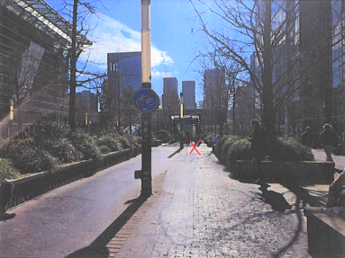 Zoals te zien op de bovenste foto, staat er links van het fietspad een verkeersbord. Dat is een G12 verkeersbord. Volgens het Reglement verkeersregels en verkeerstekens 1990 (RVV 1990), bijlage 1, staat dit bord voor: ‘Einde verplicht fietspad’. Dit betekent dat fietsers na dat bord moeten doorfietsen op de rijbaan, indien er een rijbaan beschikbaar is. Op het Zuidplein is geen rijbaan waarop fietsers verder kunnen fietsen, dus fietsers moeten daar afstappen en te voet verder gaan. Op de onderste foto is een dunne rij tegels te zien met een bolling aan de bovenkant, zogenaamde (kleine) “biggenruggen”. Die biggenruggen dienen om de snelheid van oneigenlijke fietsers, dus fietsers die niet afstappen, af te remmen.