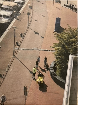 “Nadat de wielrenner weer aanspreekbaar was hebben we gevraagd wat er gebeurd is, aangezien ik de val niet met eigen ogen gezien heb. De wielrenner gaf aan dat hij over een soort van drempel was gefietst en daardoor de macht over het stuur verloor. (…) Nadat de motorambulance was gearriveerd kwam ook de politie toevallig langsrijden. Hier hebben wij een melding gemaakt dat de drempel naar onze mening de oorzaak van de val was. De politie heeft de drempel bekeken en enkele aanpassingen gemaakt. Volgens mij was de drempel geen 24 uur na de val opgeruimd. Een buurman uit het appartementencomplex heeft de val niet gezien, deze heeft alleen van de situatie nadat deze was gebeurd enkele foto’s gemaakt, hierop is ook te zien dat de drempel, zowel op het [straat 4] alsook op het fietspad iets omhoogsteekt. Het is zelfs zo dat toen wij meneer aan het helpen waren enkele fietsers over de drempel fietsen en bijna vielen en hun hockeystick o.i.d. verloren. (…)”
