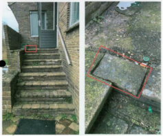 Door mij, rapporteur, kan niet vastgesteld worden of de betreffende stenen buitentrap, ten tijde van het ongeval, gebreken vertoonde. Ik trof tijdens mijn inspectie één losliggende steen aan. Het is niet bekend c.q. niet te achterhalen of deze betreffende steen, ten tijde van het ongeval, ook al losgelegen heeft.