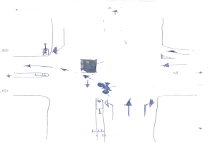 “Gevraagd naar de toedracht en dit weet hij heel duidelijk aan te geven: hij komt met 40 km. per uur aanrijden op een groen verkeerslicht en op 10 meter ervoor springt deze op oranje. Hij is dus echt dwars/makkelijk door oranje gereden. Hij weet niet of er iemand achter hem heeft gereden.”