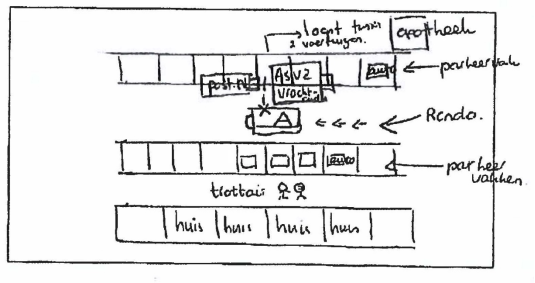 Verder heeft zij dit formulier voorzien van de volgende situatietekening: